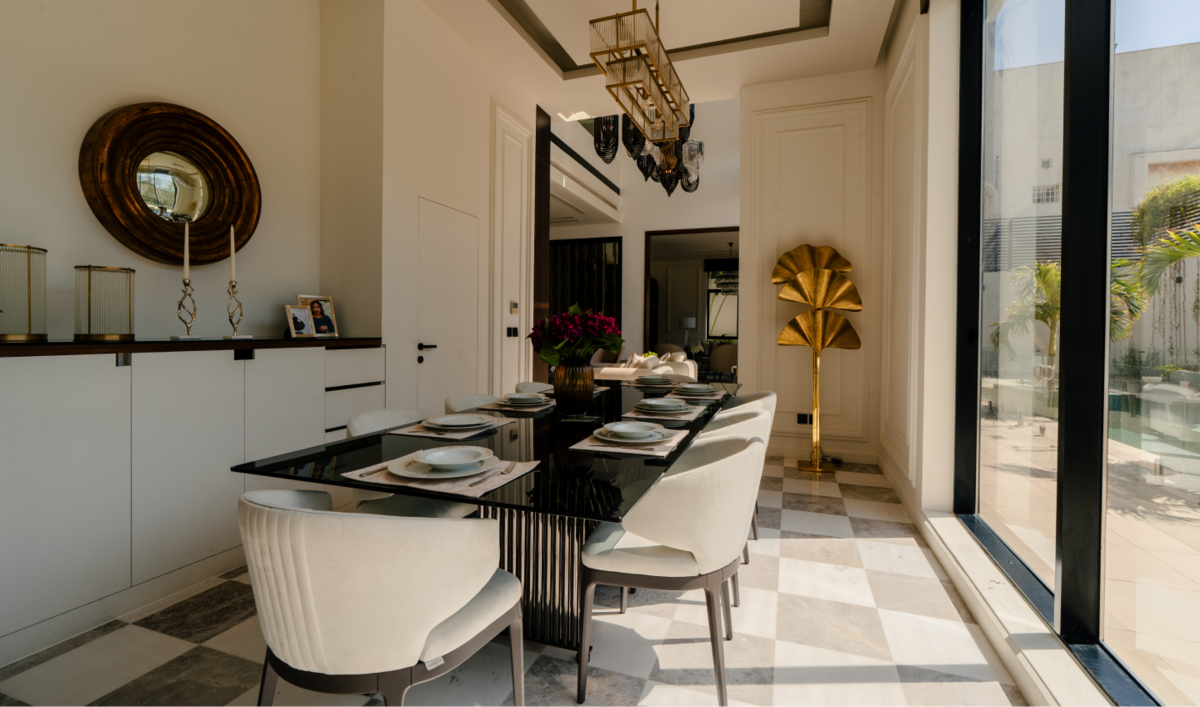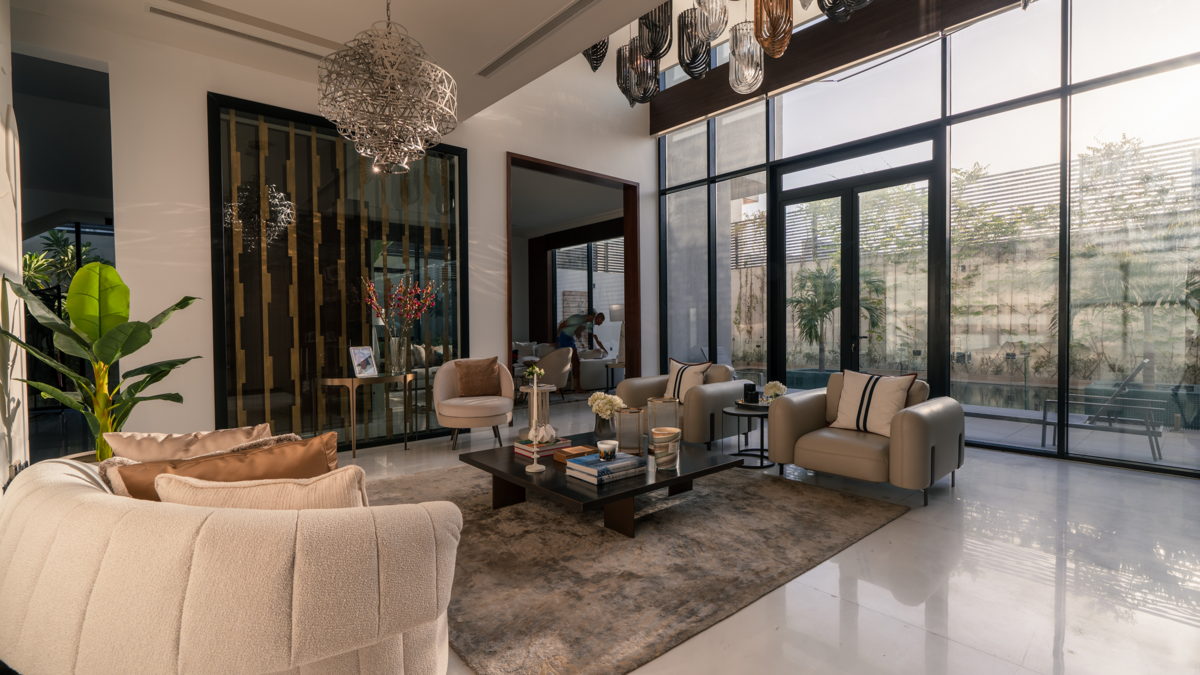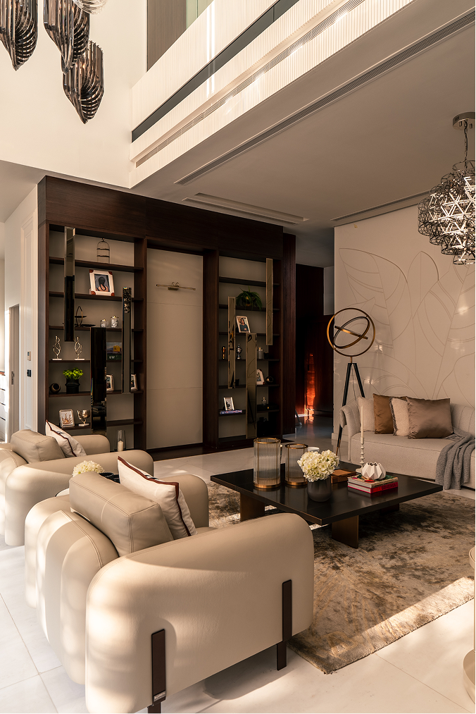 This six-bedroom, 14,679 sq ft villa was designed as a refined retreat for a young family. The brief called for interiors that feel warm, elegant, and inviting while maintaining a sense of sophistication throughout.