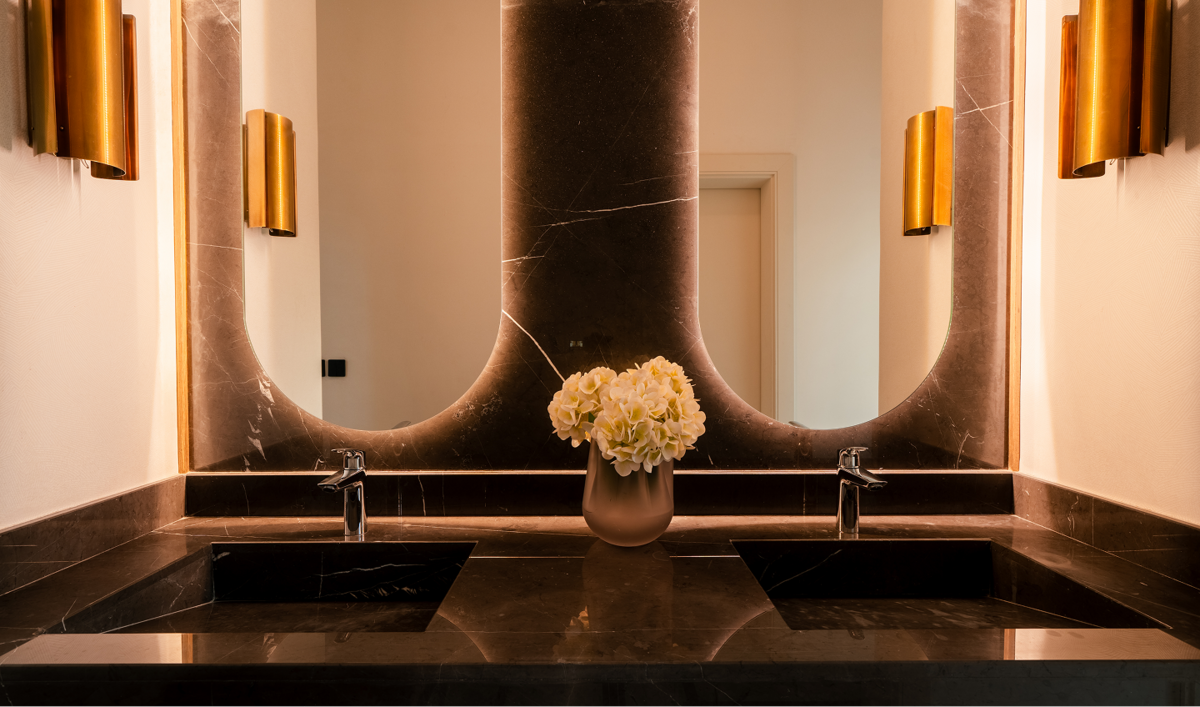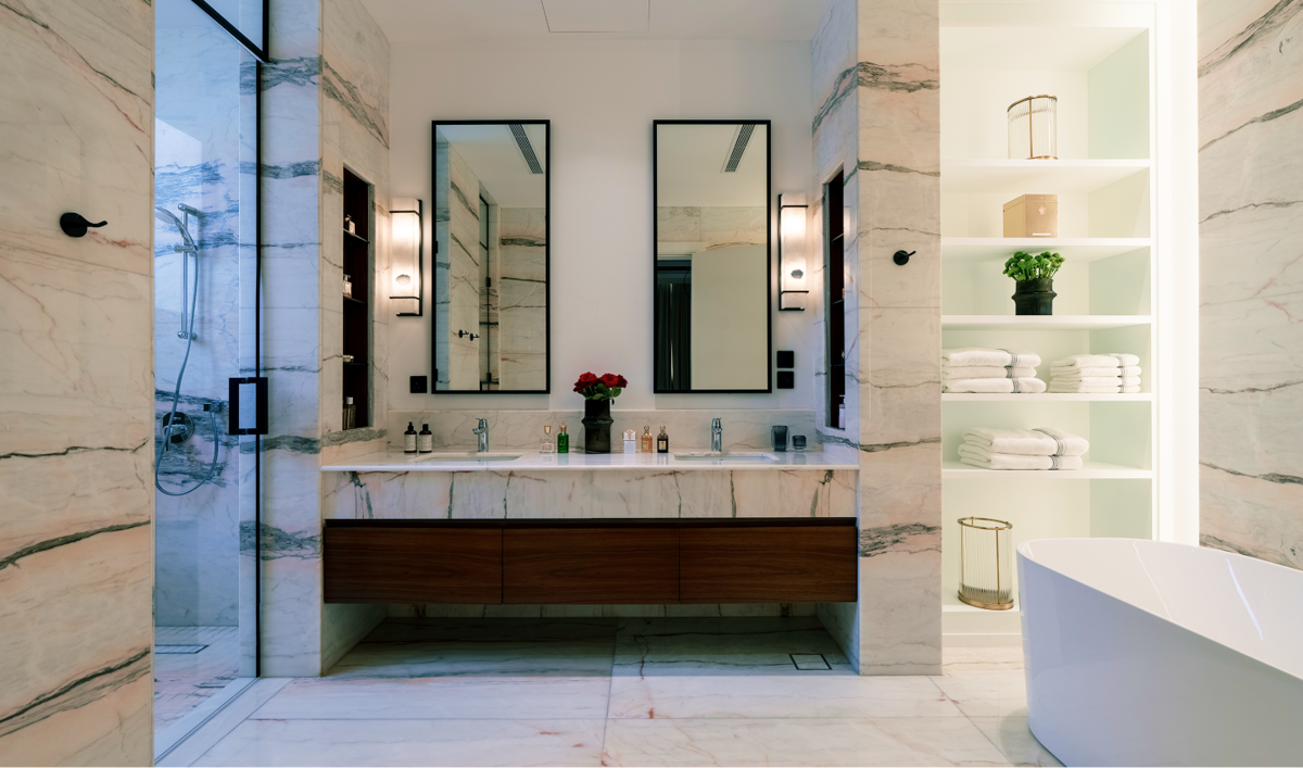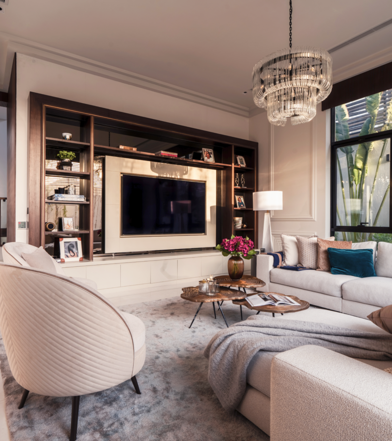 Our team curated every detail with care, from hand-painted silk wallpapers and bespoke lighting to marble flooring and custom wardrobes. The serene private pool and landscaped surroundings enhance the villa’s sense of calm and continuity, creating a home that feels both elevated and effortlessly liveable.